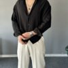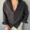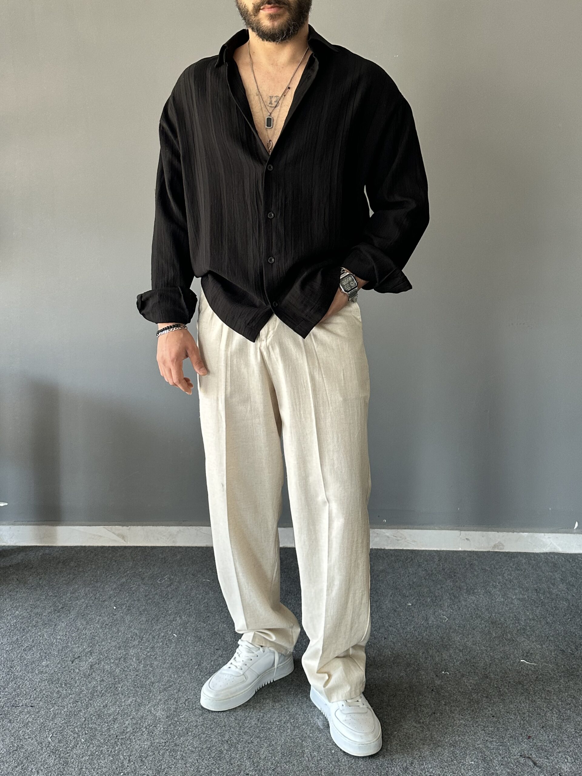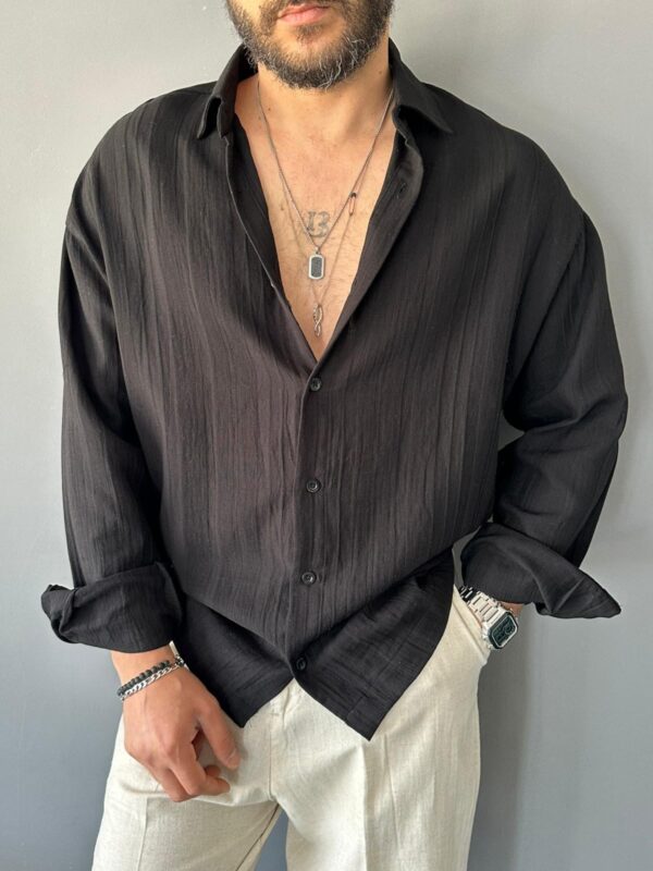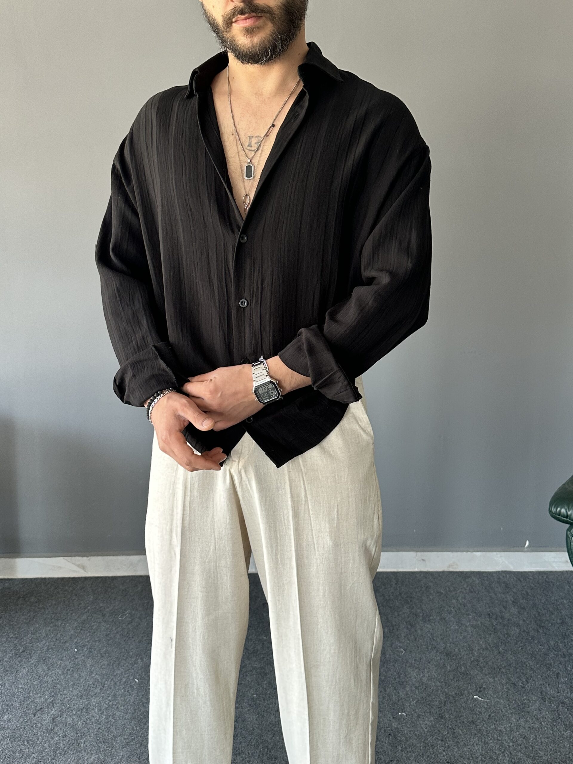 Armürlü Müslin Kumaş Siyah Oversize Gömlek