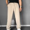 Baggy Kalıp Pileli Krem Pantolon