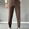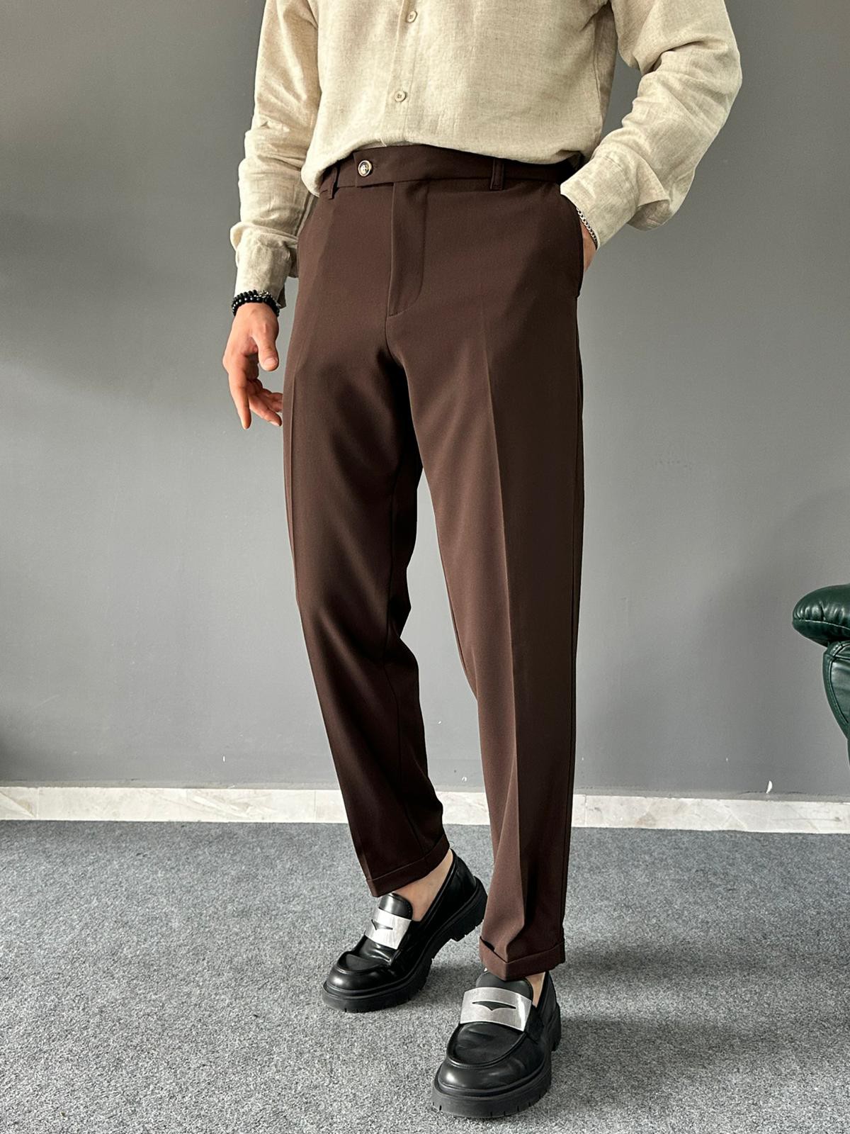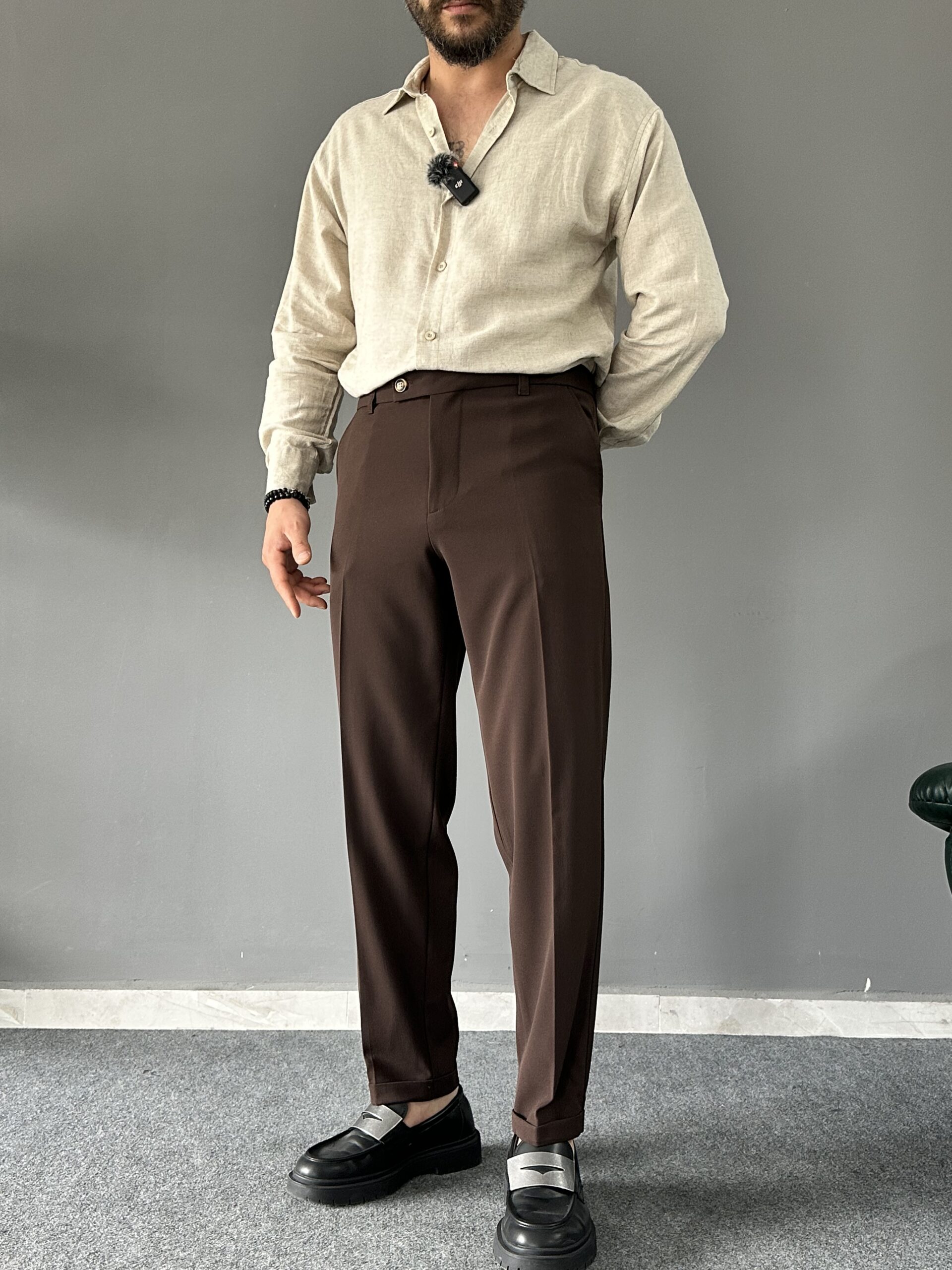 Boyfriend Kalıp Kısa Dil Detaylı Kahve Pantolon