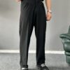 Dil Detaylı Pileli Siyah Baggy Pantolon