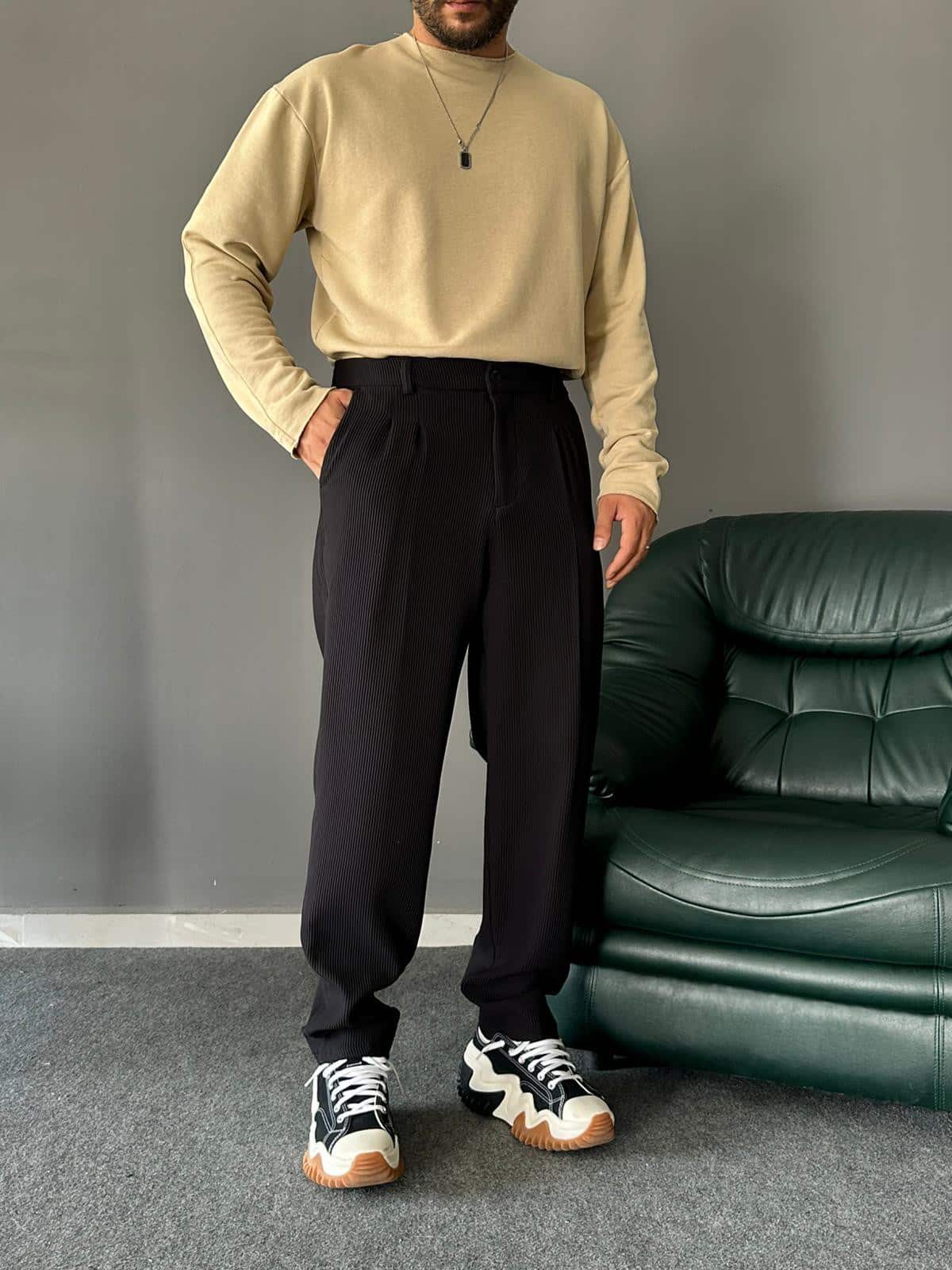 Gerçekten kurtarıcı bir model olup sonbahar kış aylarında kombinlerinizin vazgeçilmez pantolonu olacaktır. Yumuşak dokusu ve esnek yapısı sayesinde rahat bir kullanım sunmaktadır. Kolay kombin edilebilir bir modeldir. Baggy severler için çok ideal bir parçadır.