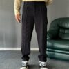 Fitilli Kumaş Siyah Baggy Kalıp Pantolon