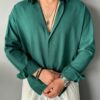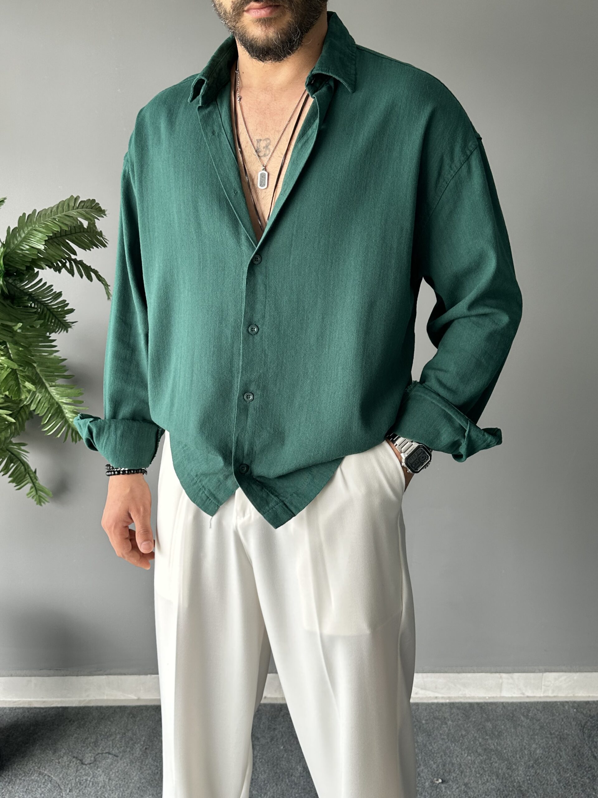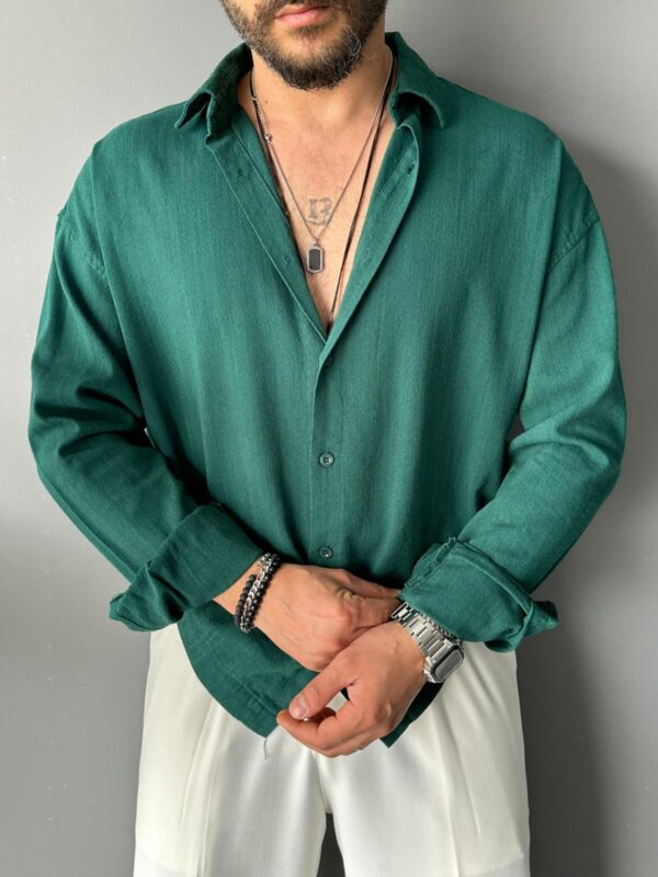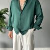 Fresh Keten Kumaş Süper Oversize Zümrüt Gömlek
