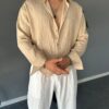 Gizli Çizgili Modal Kumaş Krem Oversize Gömlek