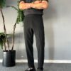 Gizli Düğmeli Kısa Dilli Siyah Regular Pantolon