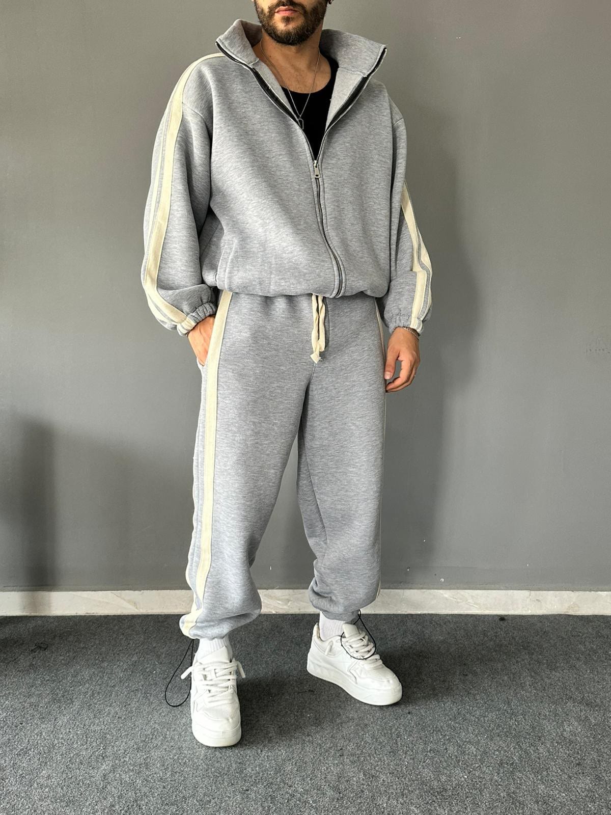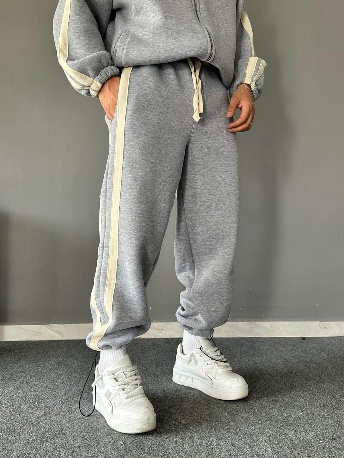 Hasır Şerit Detaylı Gri Eşofman Takım