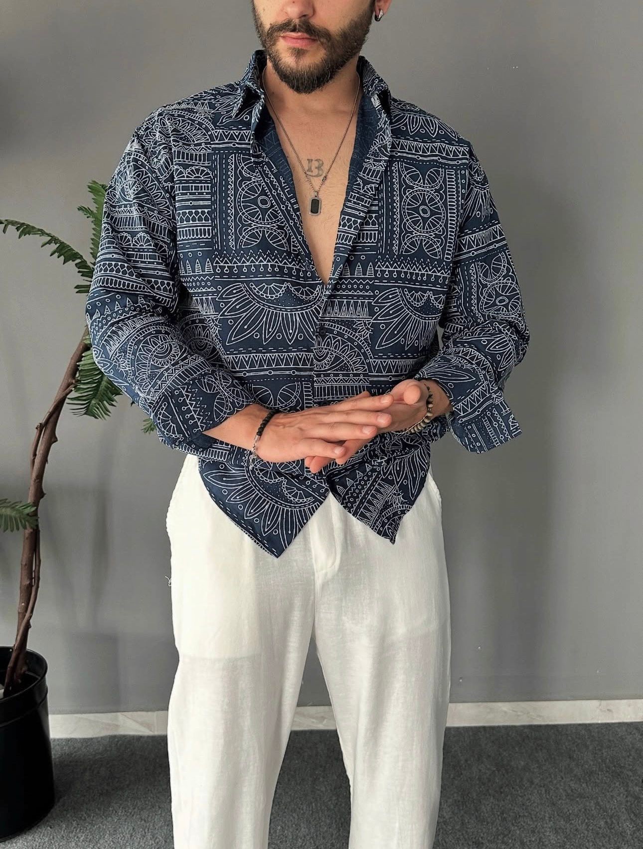 Desenli oluşu sayesinde ekstra dikkat çekici ve havalı bir görünüm sağlayan bu gömlek yaz aylarında kombinlerinizi tamamlayacak bir modeldir.