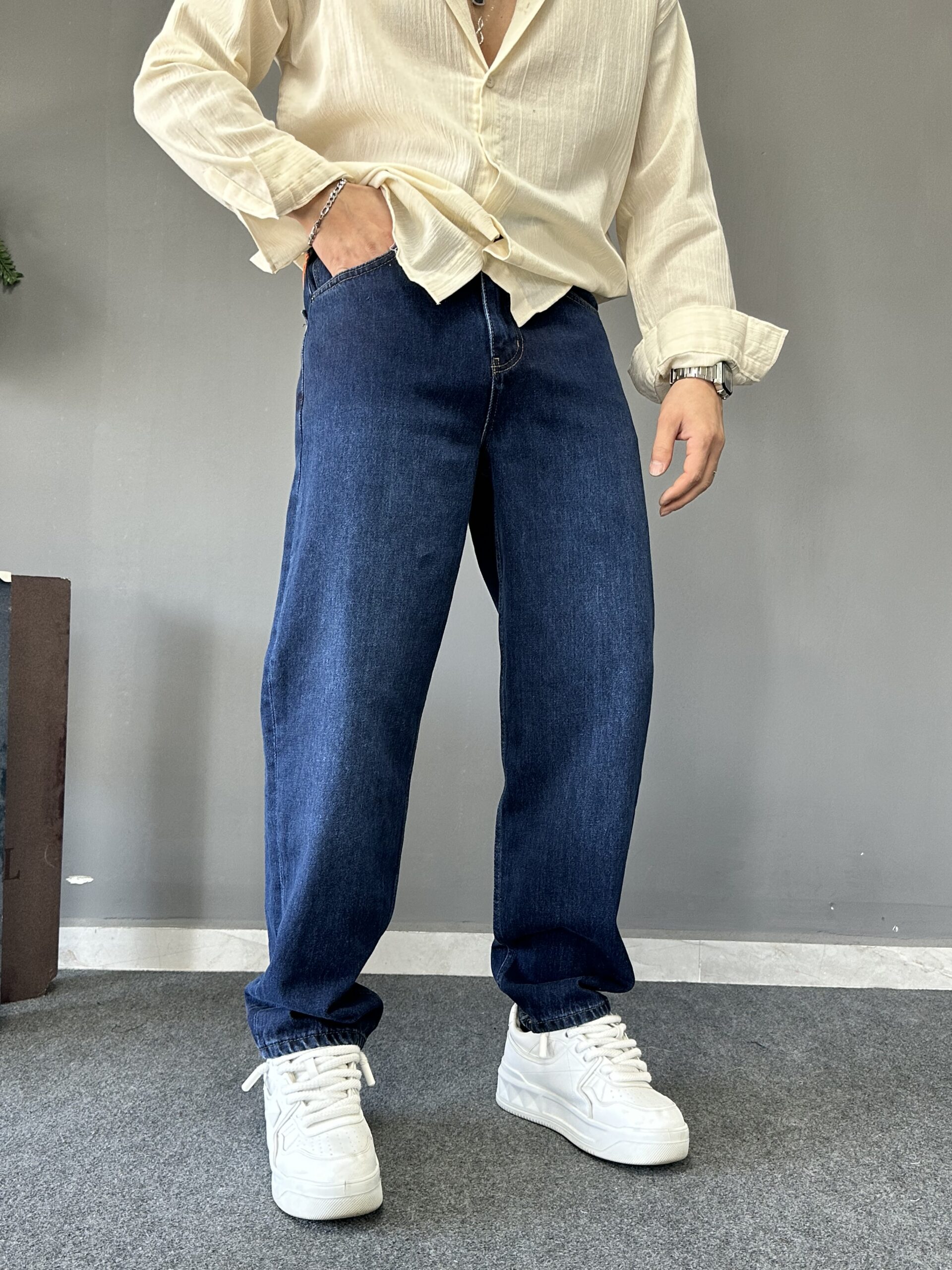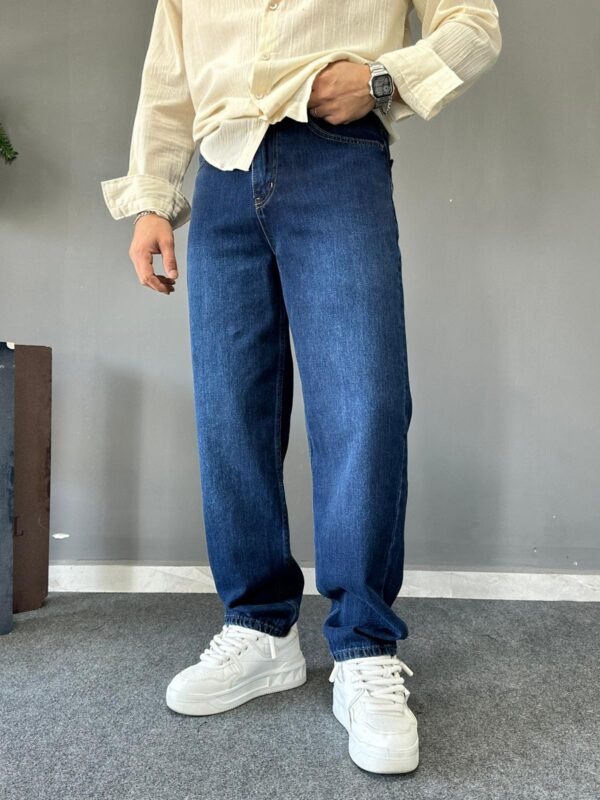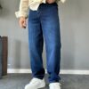 Koyu Taşlamalı Mavi Baggy Jean