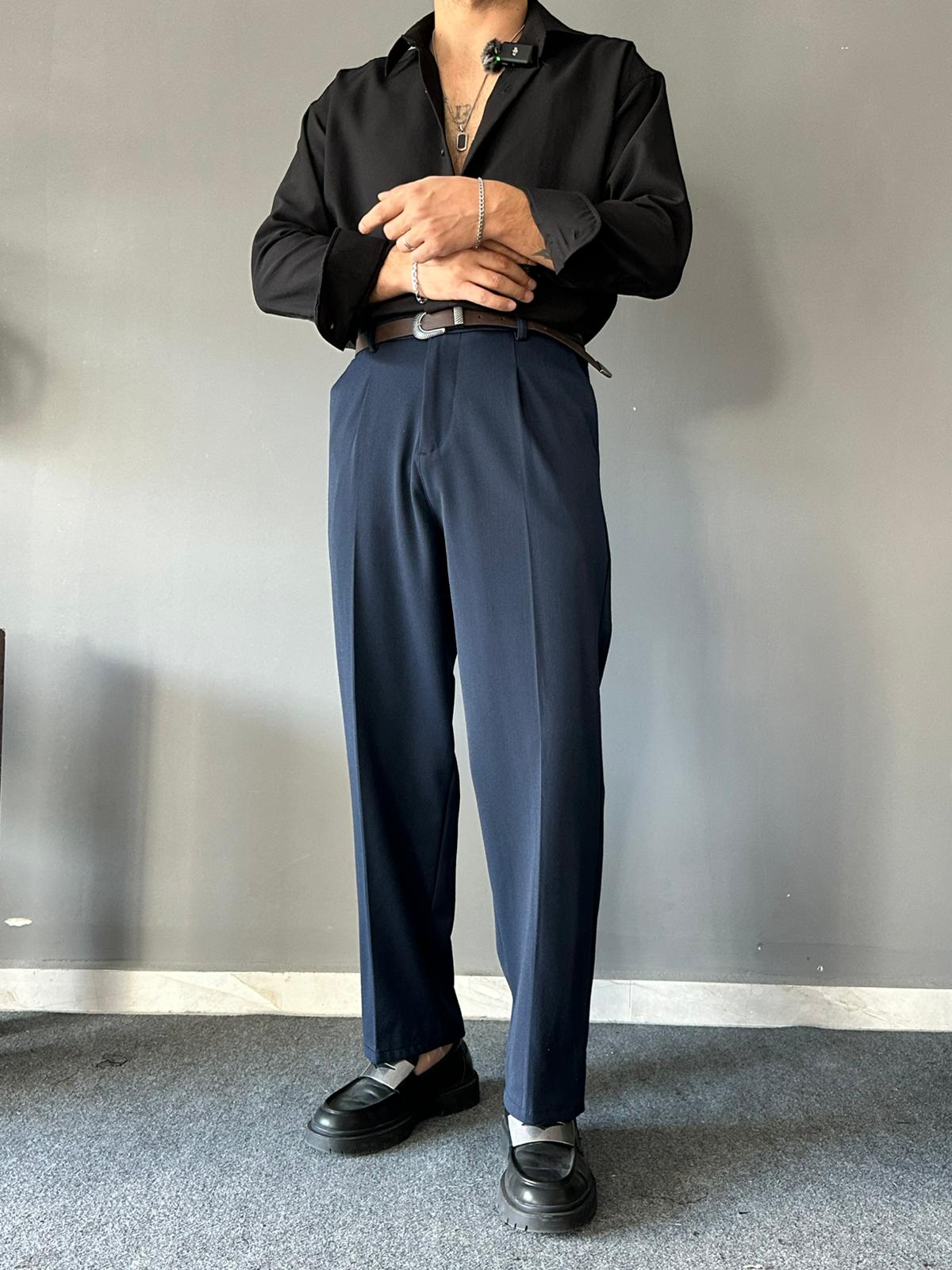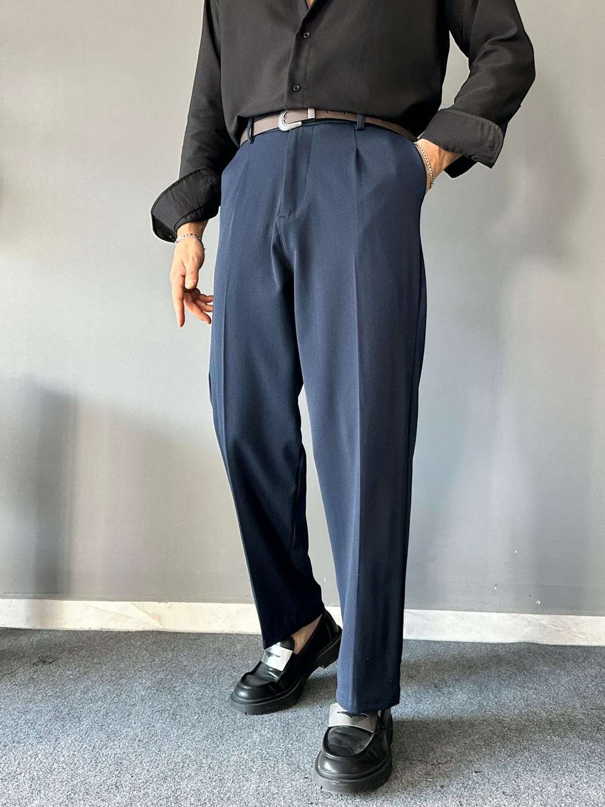 Lacivert Süper Baggy Kemerli Pantolon