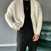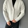 Ürünümüz gramajlı ve kalın bir yapıya sahiptir ceket formunda bir hırkadır. Dikey çizgili desenli oluşu ürünü ön plana çıkarmakta olup son dönemlerin trendi olan old money kombinler için çok ideal bir parçadır.