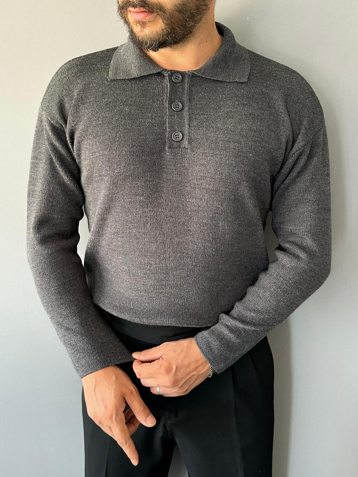 Old Money Polo Yakalı Antrasit Regular Kazak