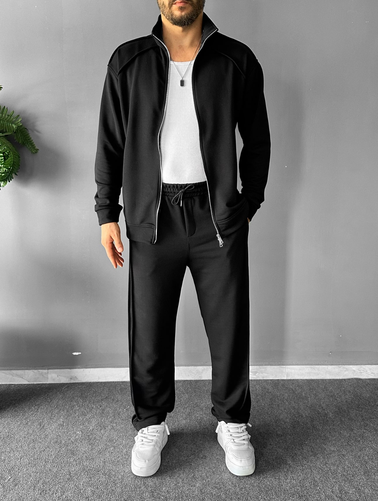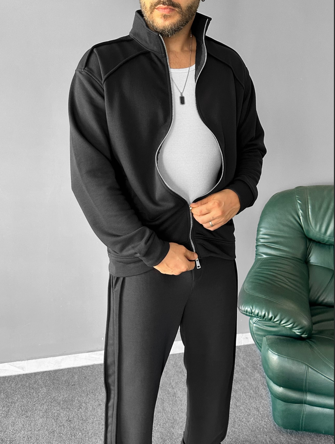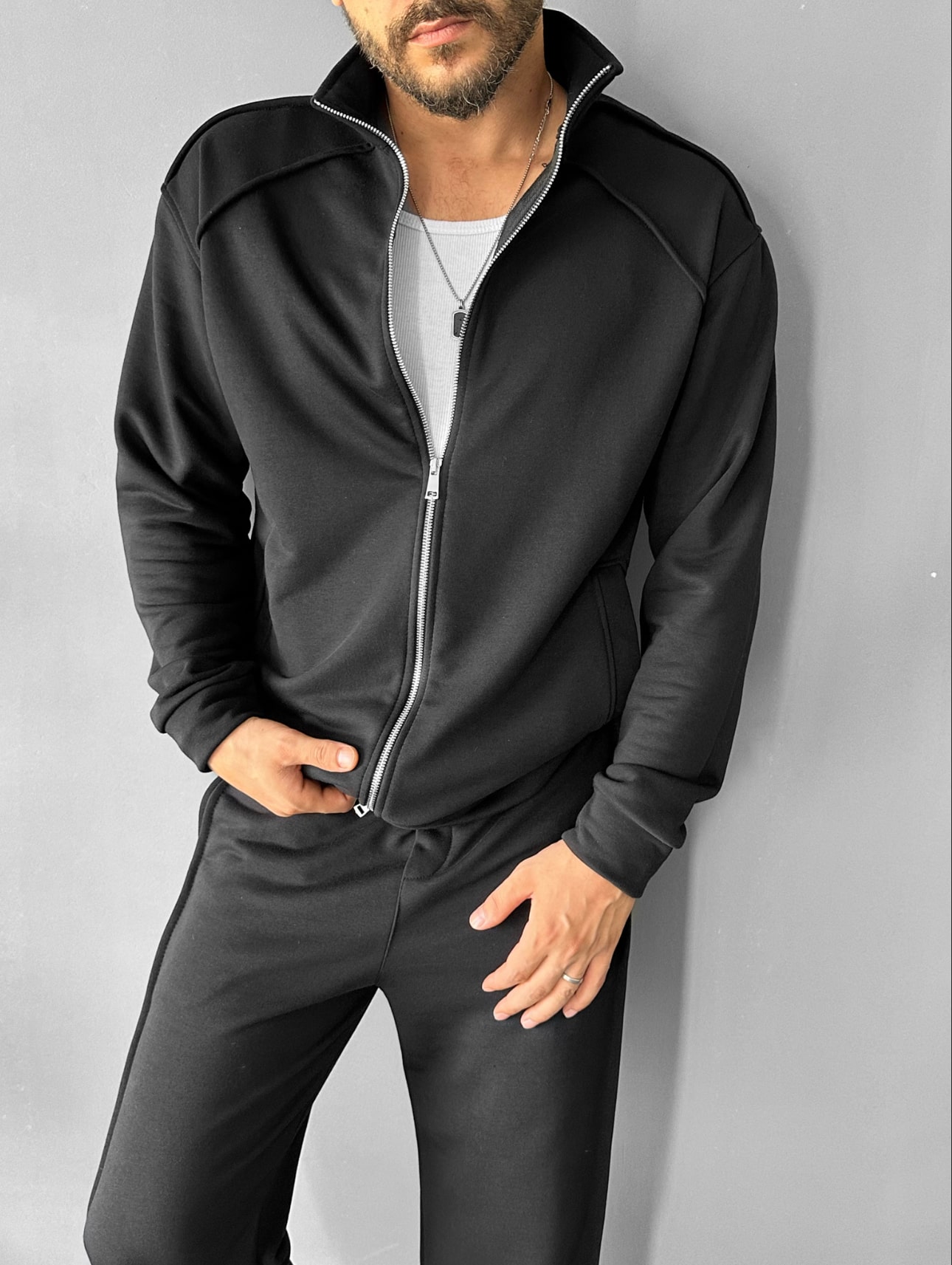 Çok rahat bir kumaş yapısına sahip olan bu takımımız esnen yapısı ile çok rahat bir kullanım sunmaktadır. Dikiş detaylar ve ceketinin dik yakalı ve çelik fermuarı ile dikkat çekici bir modeldir.