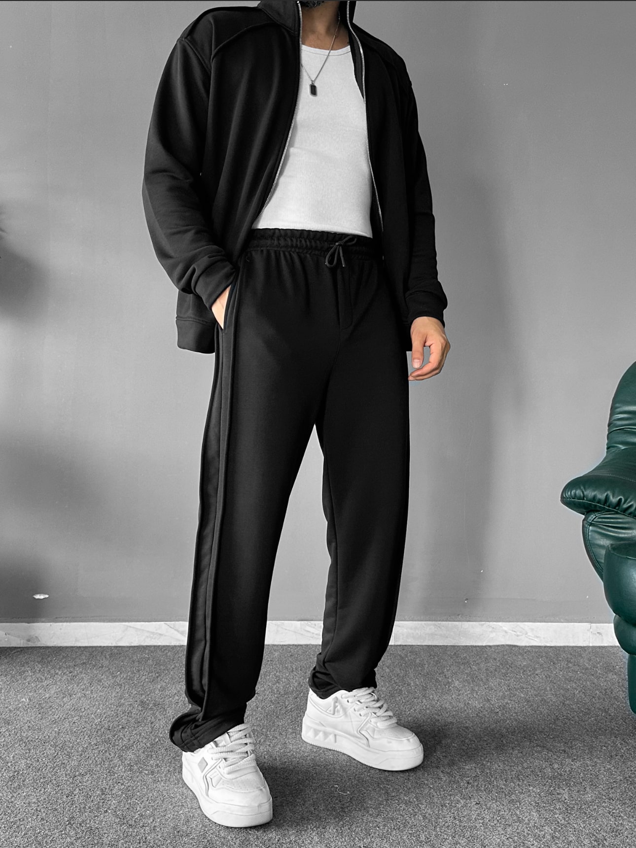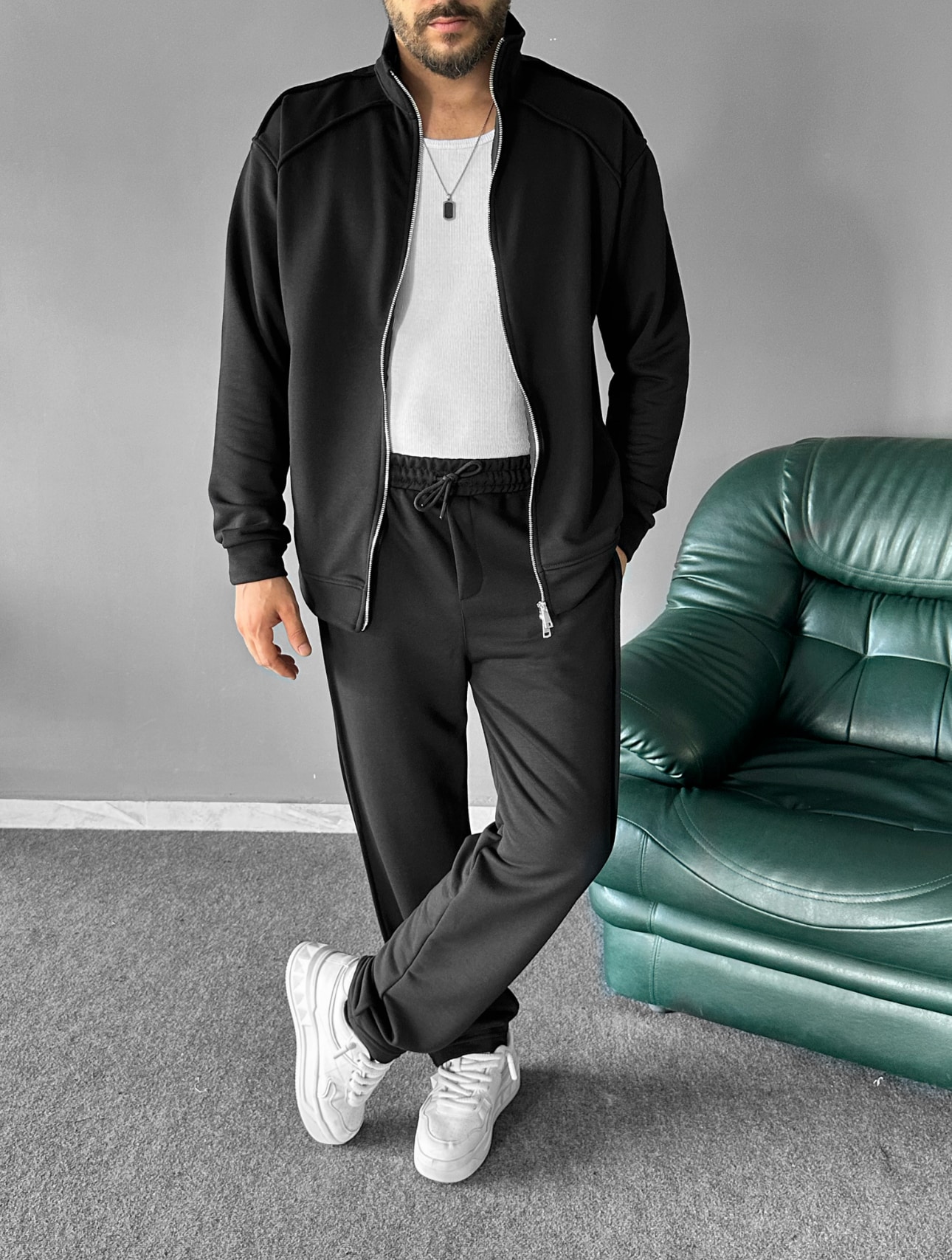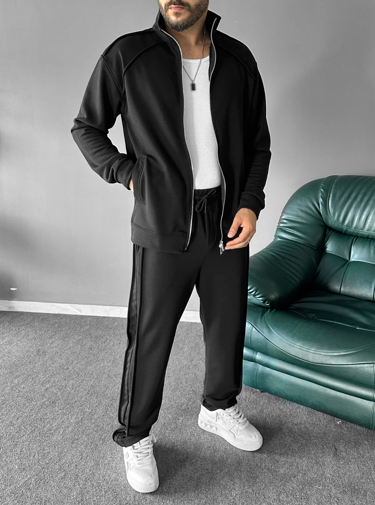 Çok rahat bir kumaş yapısına sahip olan bu takımımız esnen yapısı ile çok rahat bir kullanım sunmaktadır. Dikiş detaylar ve ceketinin dik yakalı ve çelik fermuarı ile dikkat çekici bir modeldir.