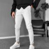 Lastik bel ve bağcıklı, 2 adet yan cep arka cep bulunmamaktadır, bacak üzeri çima (şerit) bulunmaktadır, fermuar paça detaylıdır, paraşüt kumaş ve likralı esnek bir yapısı vardır, slim fit bir model olup vücudu sarmaktadır.