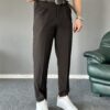 Pile Detaylı Kemerli Kahve İtalyan Kesim Pantolon