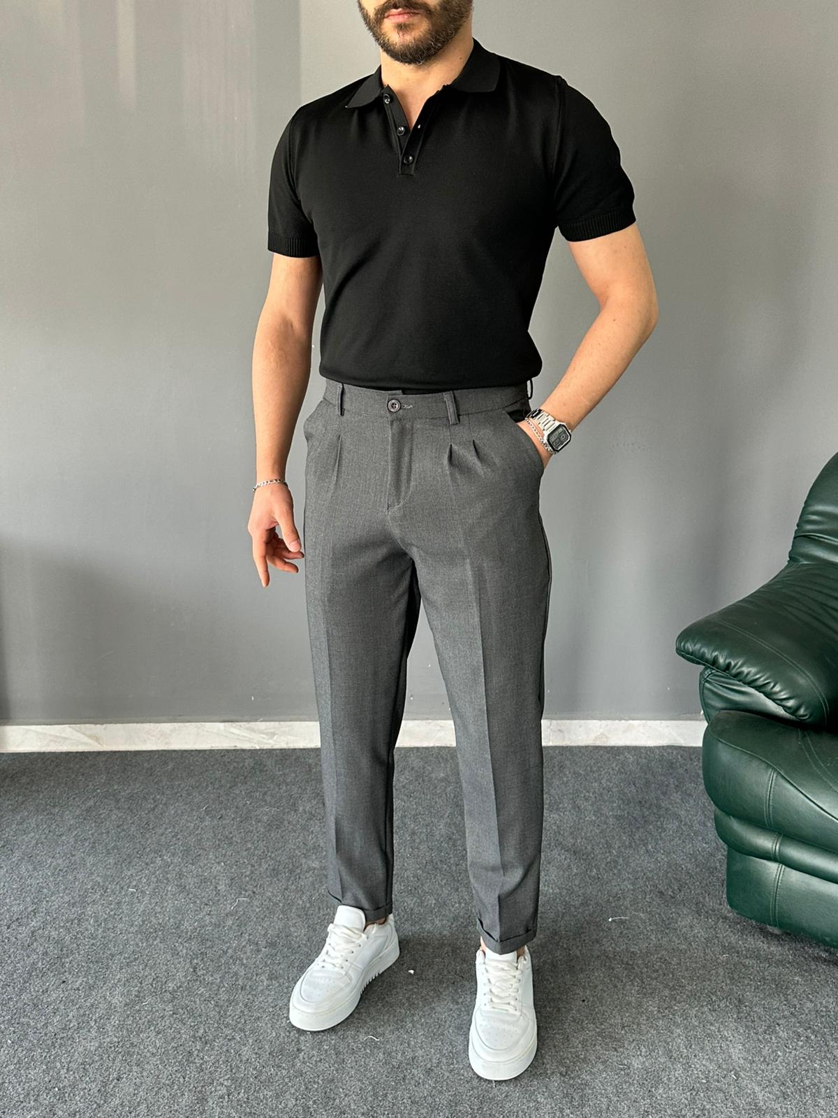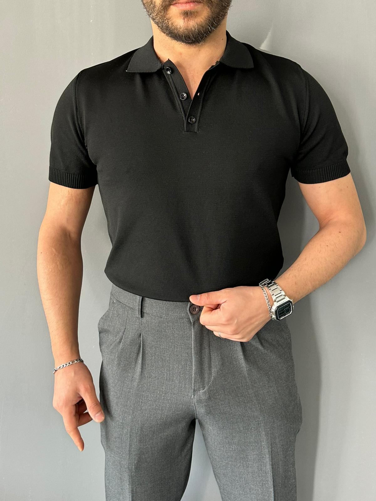 Polo Yakalı Siyah Regular Pamuk Triko