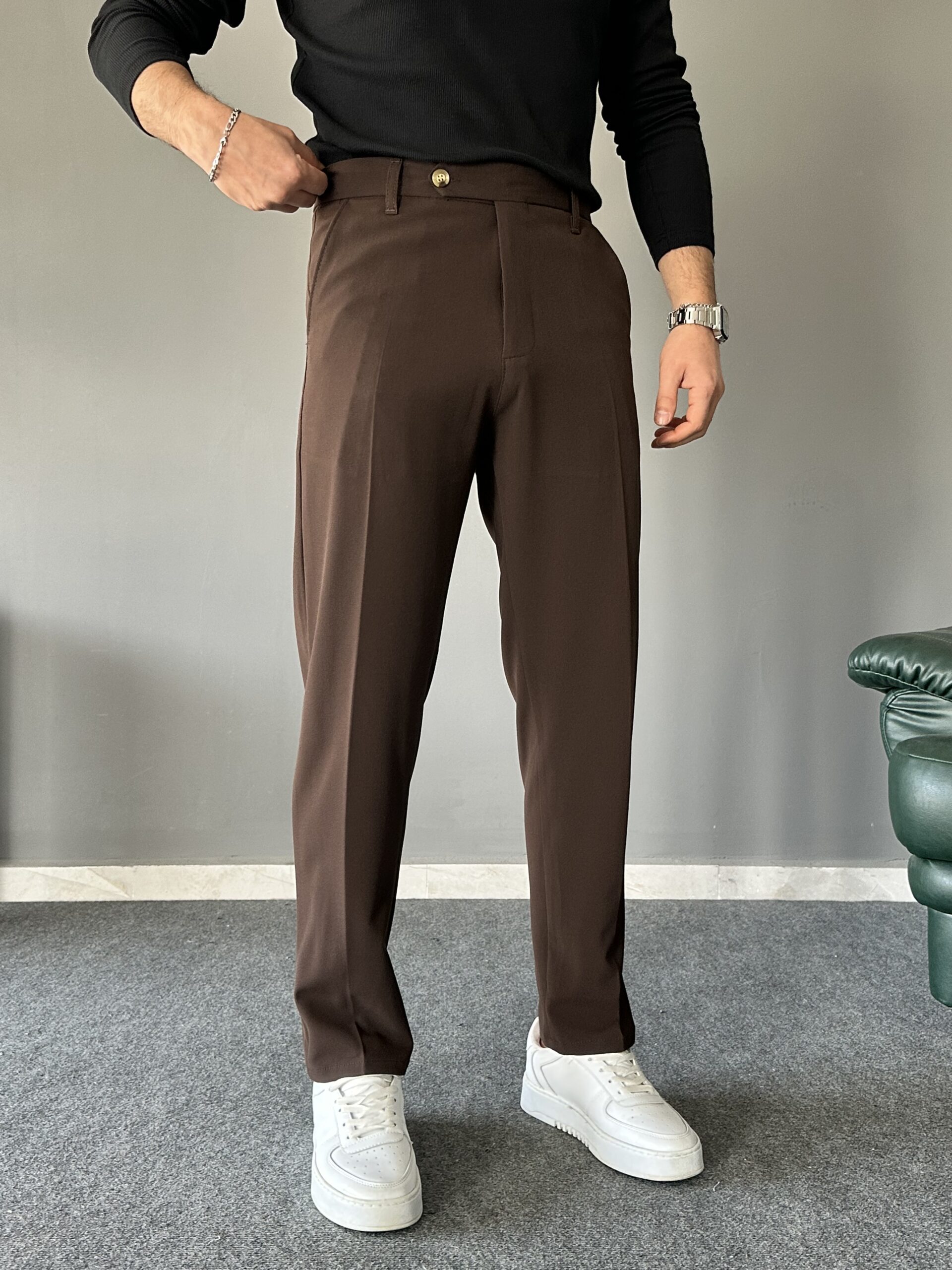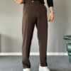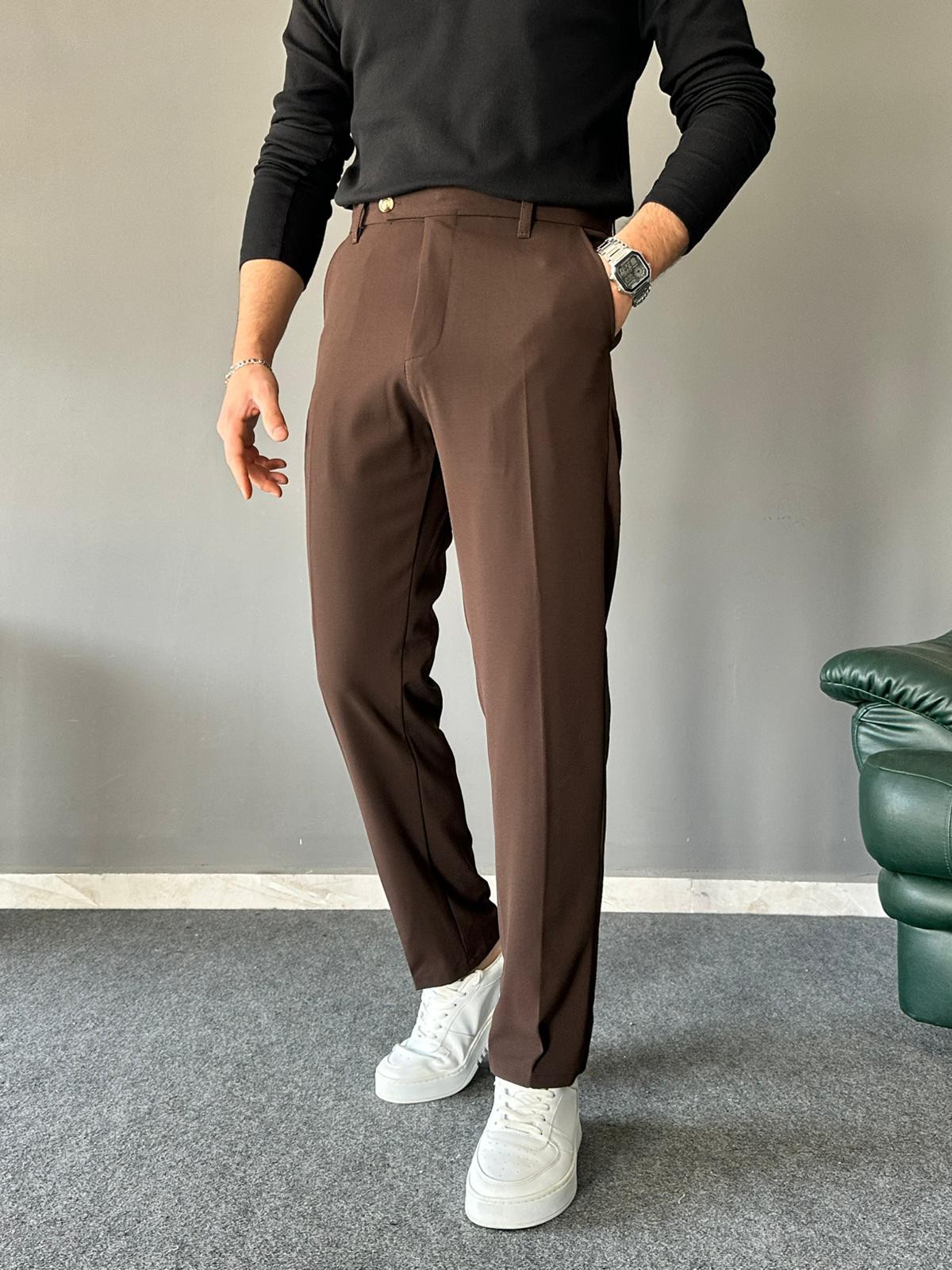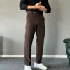 Regular Kalıp Kısa Dil Detaylı Kahve Pamuk Pantolon
