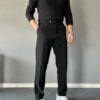 Regular Kalıp Kısa Dil Detaylı Siyah Pamuk Pantolon