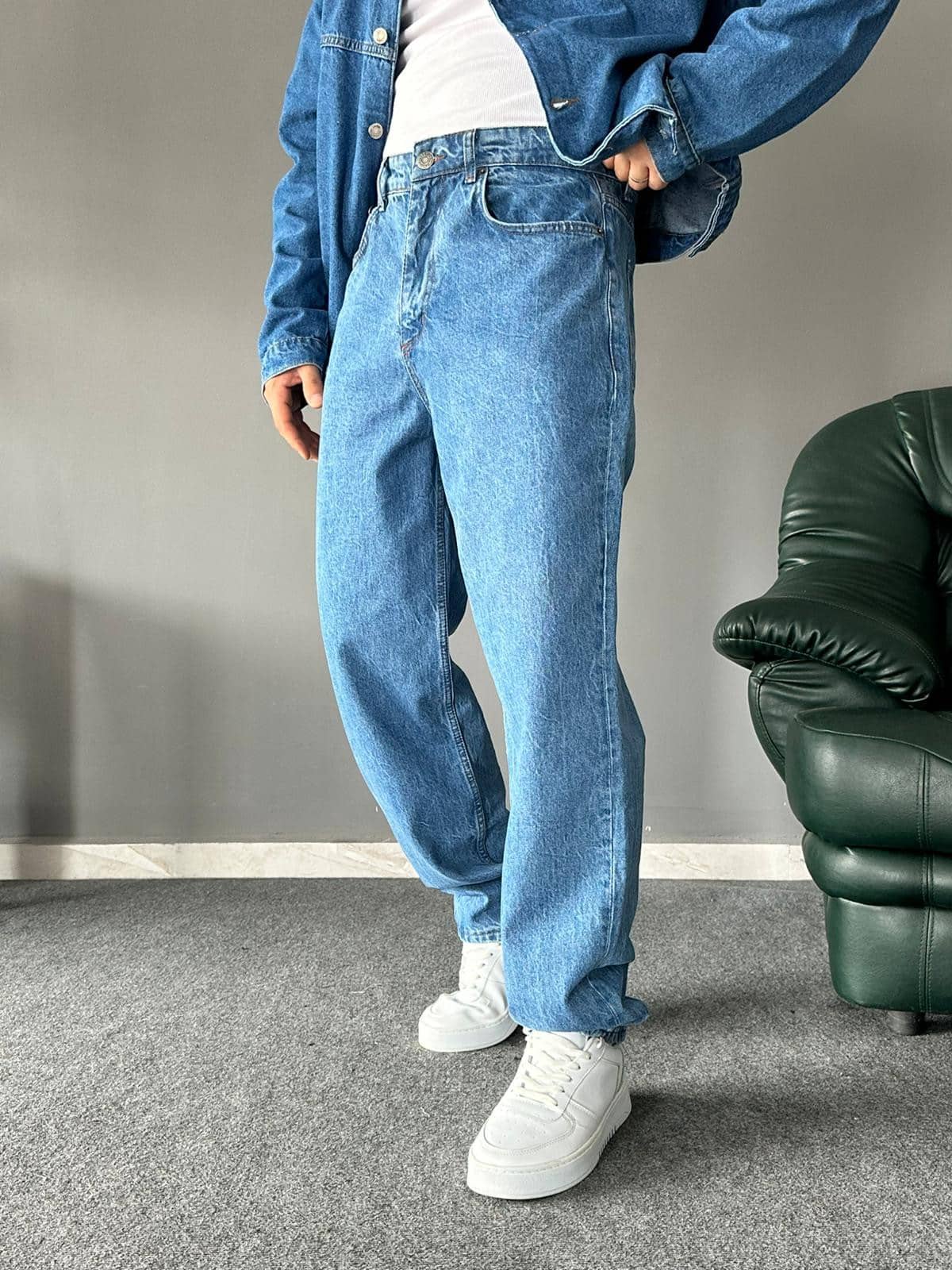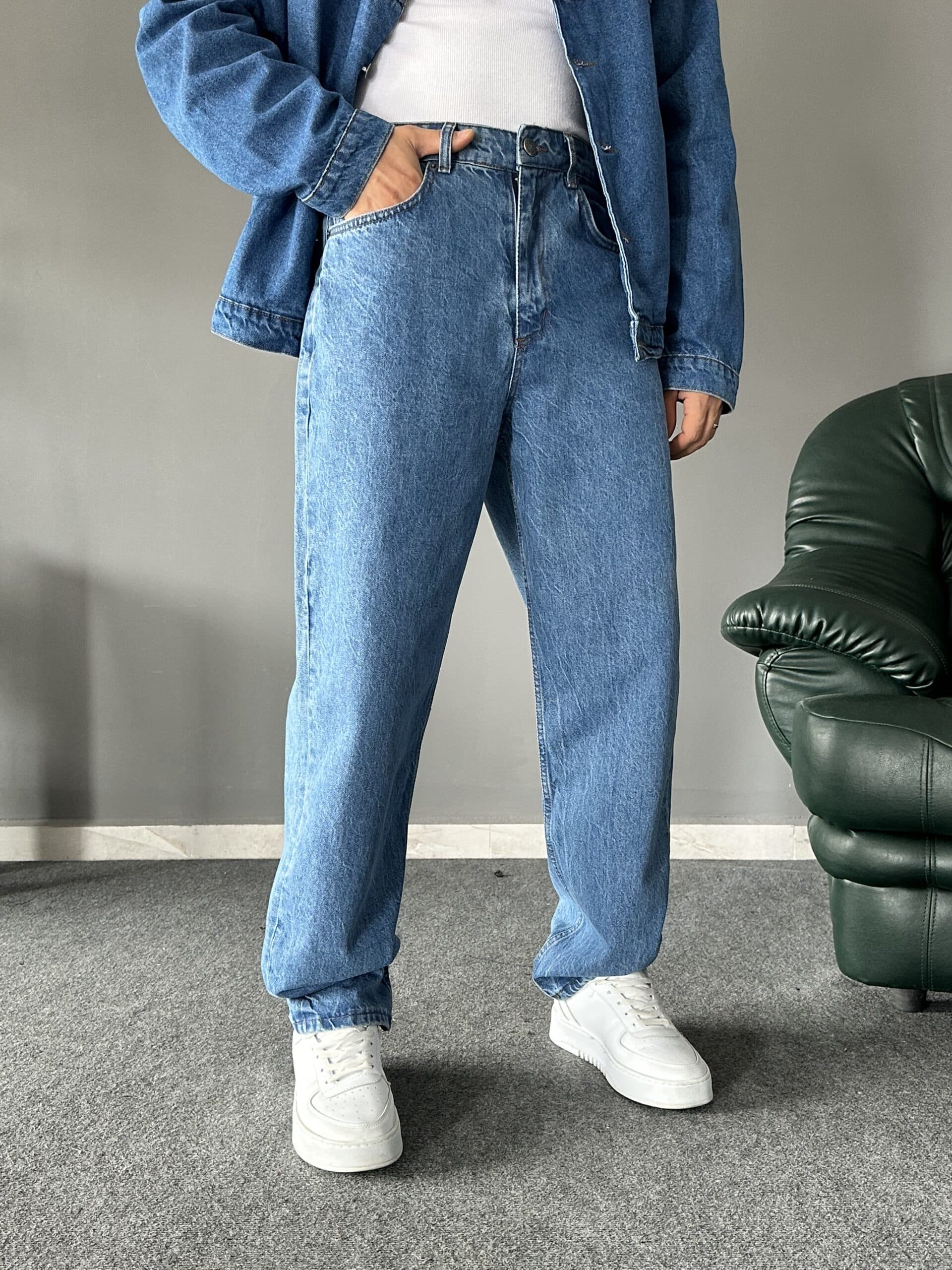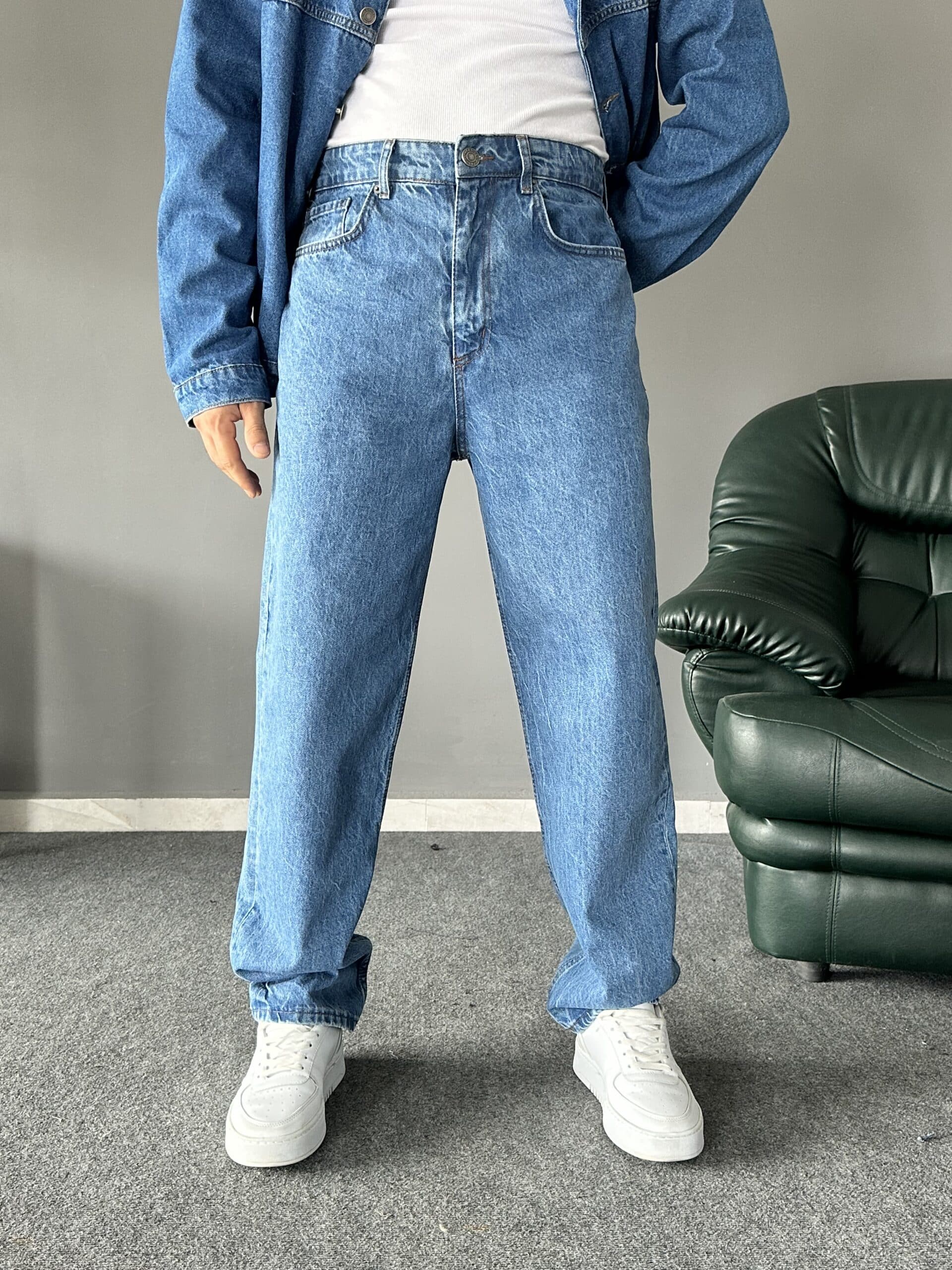 Yıkamalı Mavi Baggy Kalıp Jean