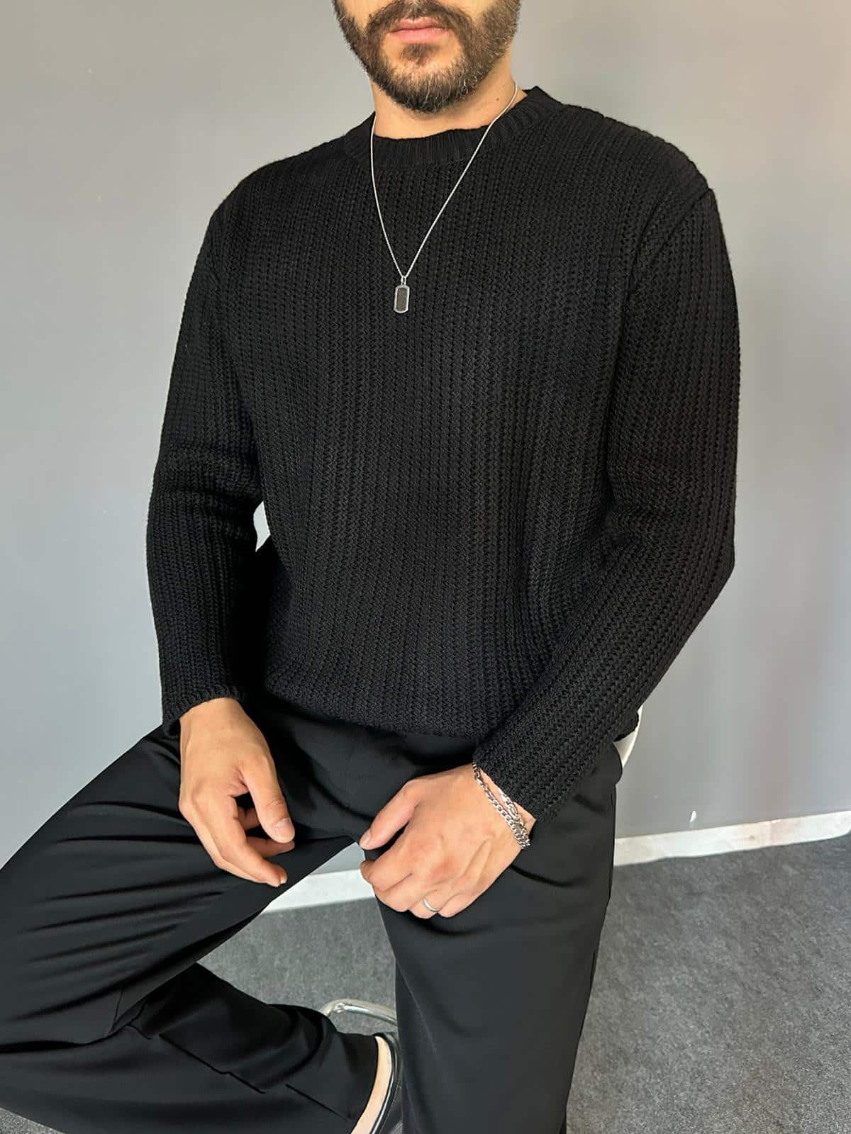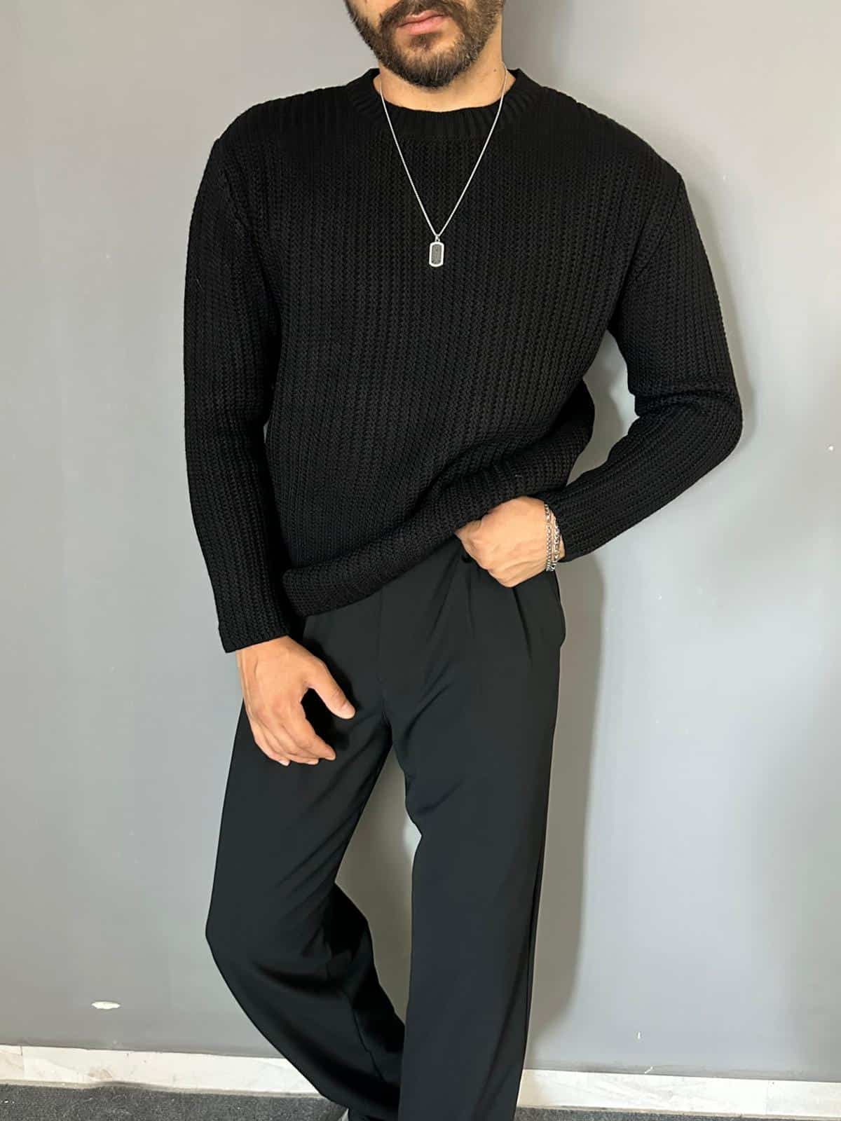 Her erkeğin dolabında olması gereken ve kış aylarının vazgeçilmezi olan kombini kolay kazak modelidir. Regular kalıplı sıkı örme kolları kavrayan bir yapısı vardır. Hem günlük kullanıma uygun hem spor hem şık kullanıma da uygundur.